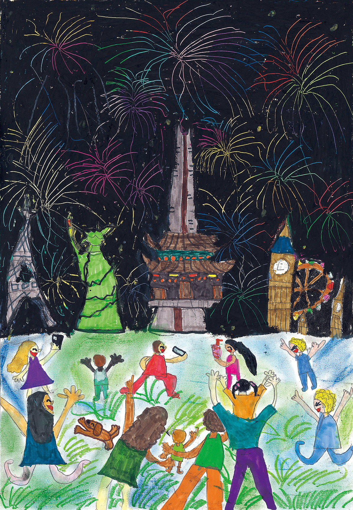 우리 함께라면, 세계의 모든 친구들과 행복한 불꽃놀이를 할 수 있습니다.