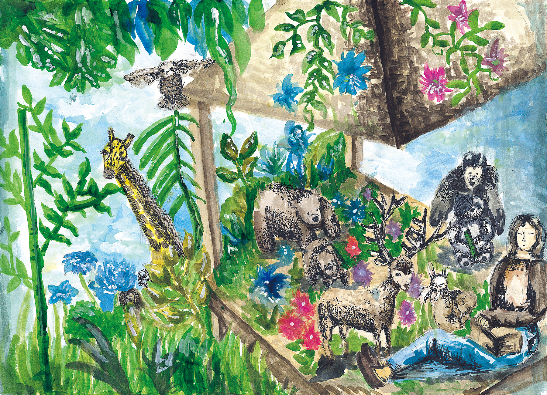 "인간과 자연, 그리고 동물이 서로를 해치지 않고 평화롭게 공존하는 것이 곧 낙원이라 생각한다. 그래서 내가 그린 낙원이라는 공간에서 모두가 행복한 모습을 표현했다."