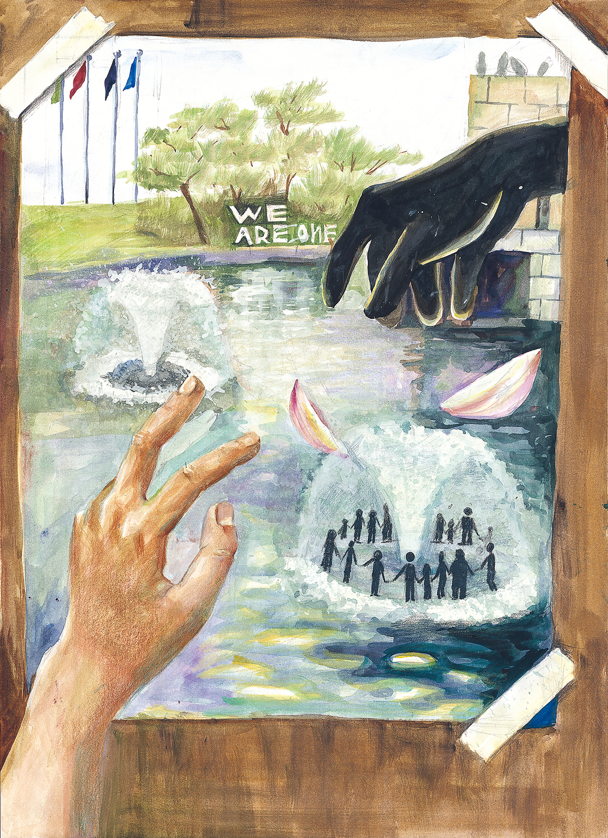 "모든 그림에는 작가가 말하고자 하는 무언가가 새겨져있다. 마치 검은 그림자처럼 정확한 형태와 속내를 알 수 없는, 오직 작가만이 느낄 수 있는 비밀같다. 하지만 우리가 그 그림을 마주한 순간 작가의 손끝에서부터 종이를 거쳐 우리의 온몸으로 전해지는 전율을 느끼게 된다. 나는 이 모든 것을 '예술에서의 공존'이라고 생각한다. 예술작품 속의 검고 형태모를 손이 우리에게 내밀어지면, 우리는 우리 마음 속의 손을 서서히 작품 속 손과 맞잡는다. 쉽게 말하면 '감상'과 '통찰'을 하는 것이다. 이것은 우리가 예술과 공존하는 방법이라고 할 수도 있고 예술 속에서 우리가 살아가는 방법이라고도 할 수 있다. 내가 그린 그림 역시 그림의 속삭임을 들어주는 예술에서의 공존이다."