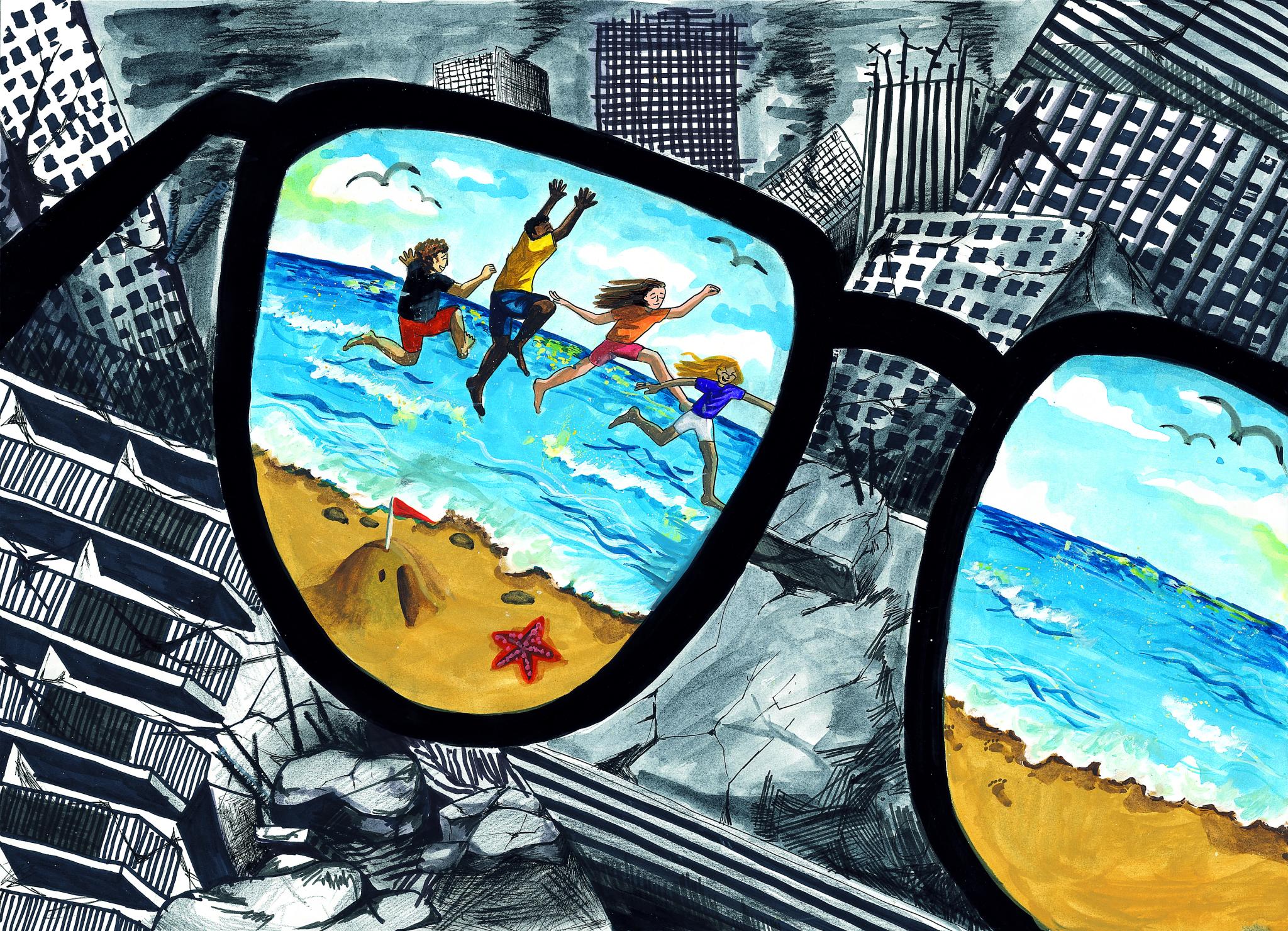 인종차별이 가득한 세상을 우리가 다른 시점으로 바라본다면 우리는 서로 각각 다르지만 모두 함께 더 나은 세상 속에서 살아갈 수 있을 것이라는 희망을 그림으로 표현해 보았습니다.