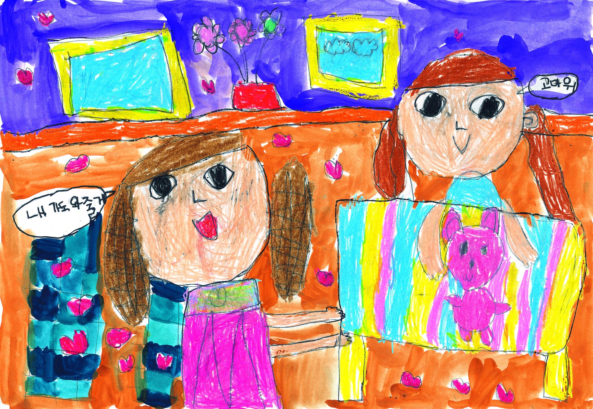 친구가 인형을 만들고 있는데 어려워해서 내가 도와주는 장면을 표현함