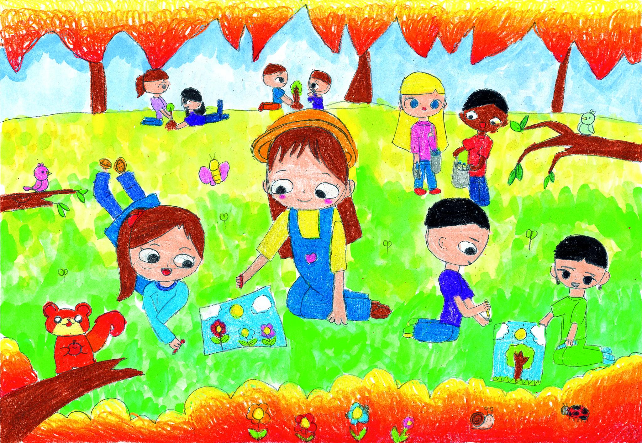 환경을 지키기 위해 서로 도우며 다시 가꾸는 세상을 그려보았어요. 자연과 사람이 모두 행복한 세상 되었으면 좋겠어요.