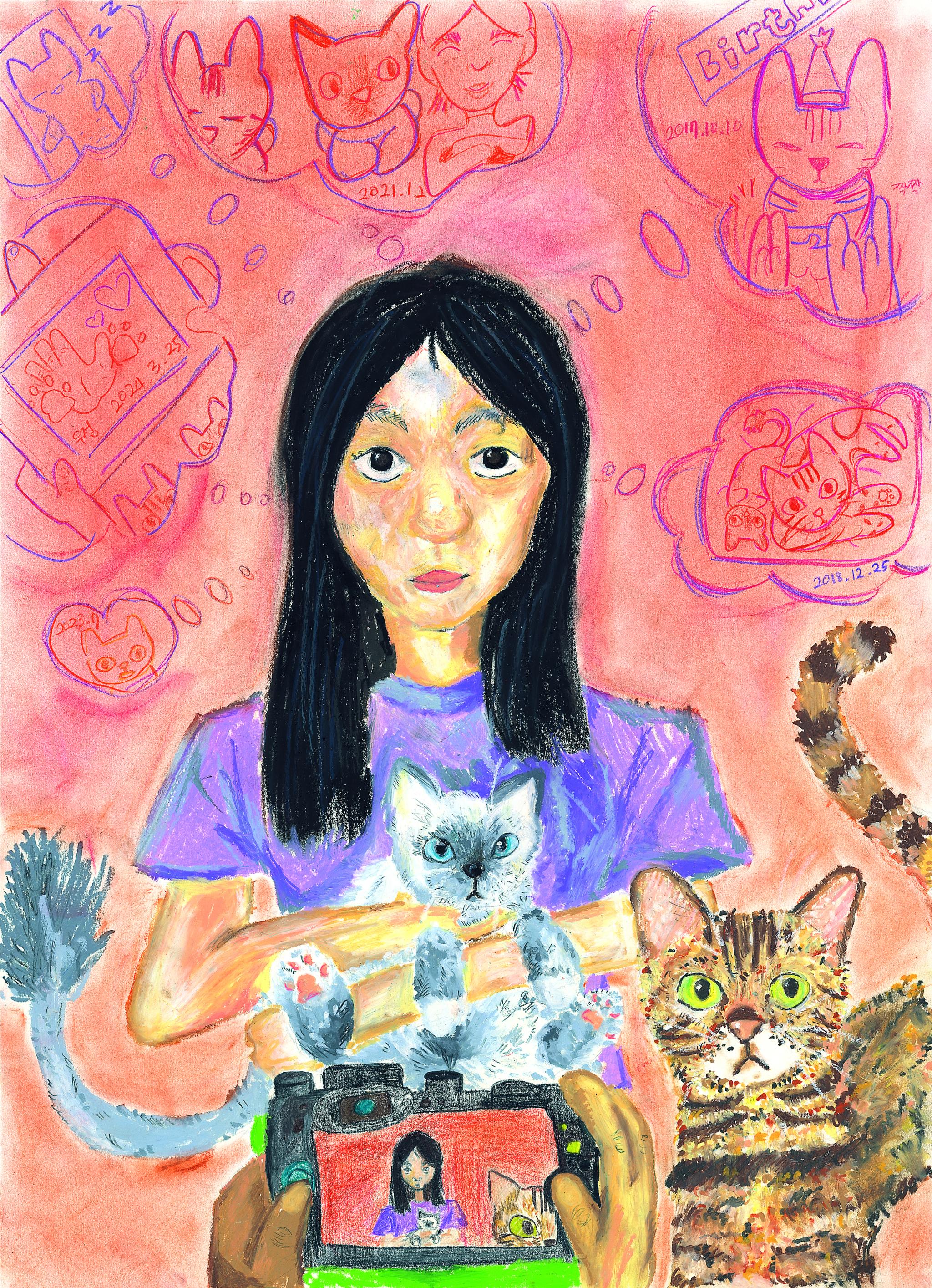 저의 반려동물 친구인 벵크와 구름이는 어렸을 때 부터 알고 지냈던 소중한 친구입니다. 말로는 표현하지 못하지만 서로의 신호로 감정을 주고받고, 벵크와 구름이랑 사진을 찍을 때, 그동안 함께 했던 즐거운 추억을 떠올리고 있는 것입니다.
