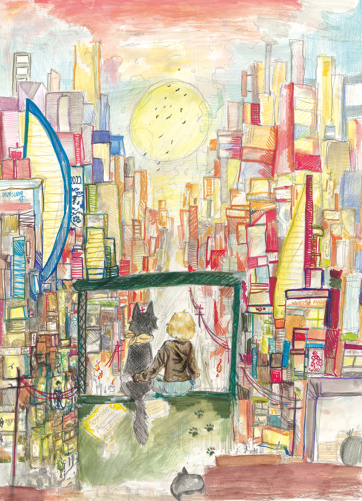 그림에서도 하늘을 보고싶은 마음을 표현하고 싶었다.