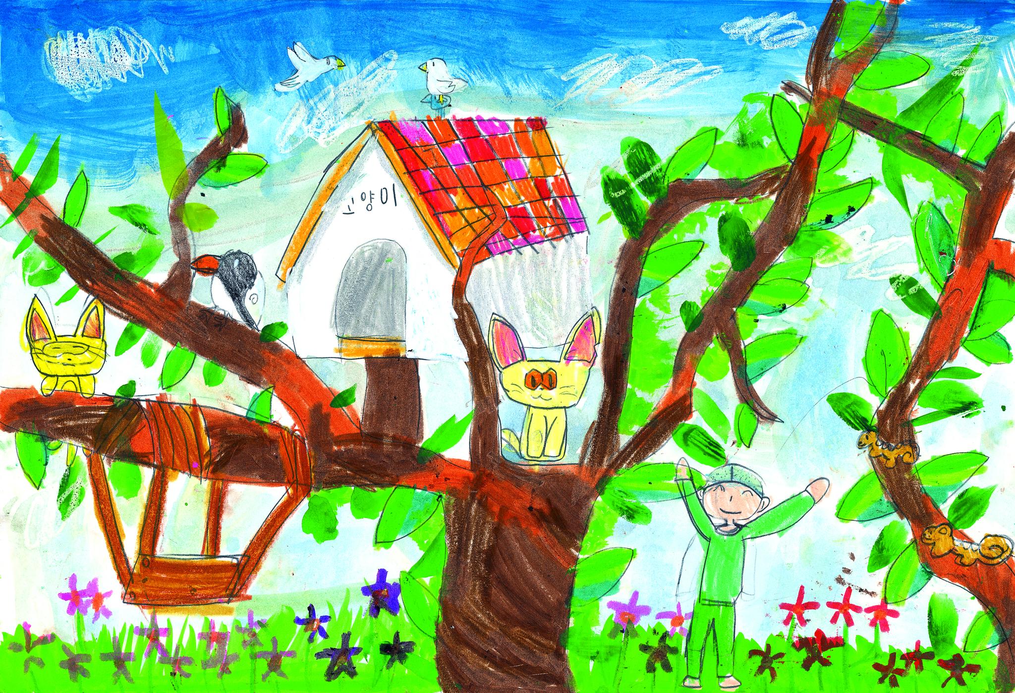 우리 곁에 커다란 나무와 귀여운 고양이 그리고 사랑하는 아빠가 있어요.
