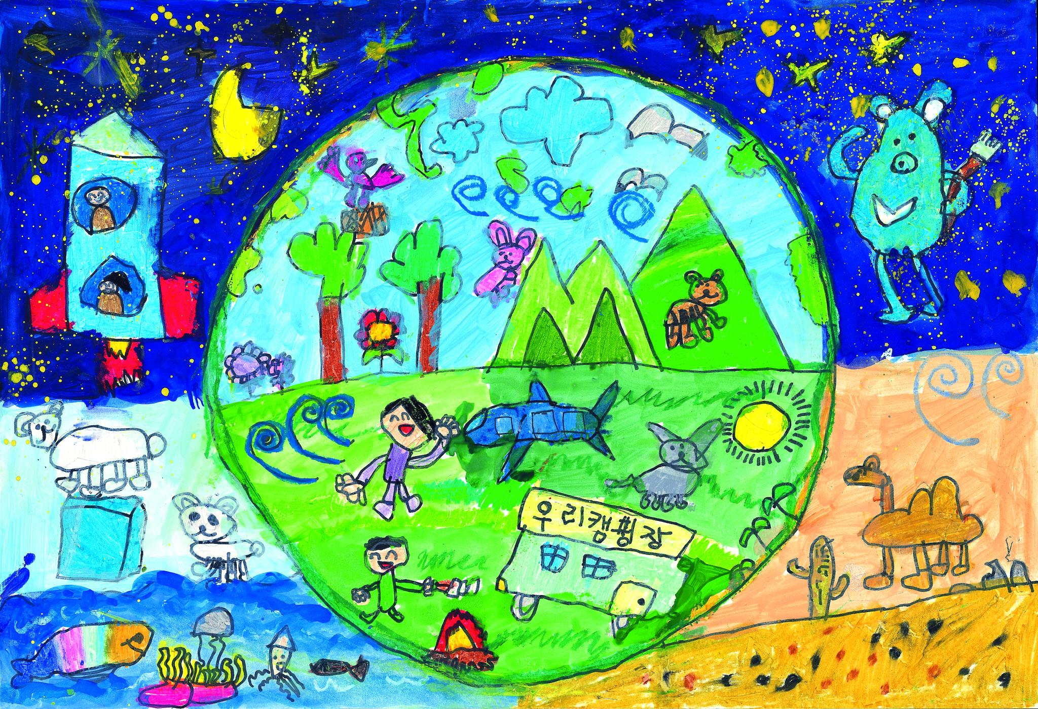 아름다운 지구별 속. 산과 바다, 사막과 우주를 생각하면서 그렸어요.
