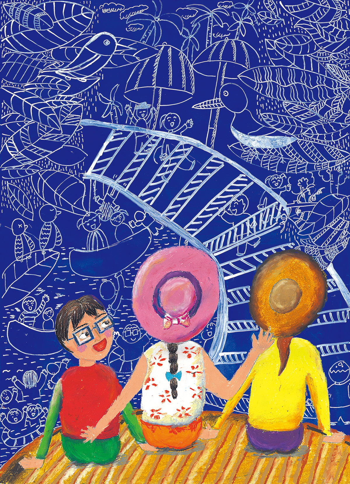 맑은 공기 마시며 친구들과 자연에 가면 행복한 기분들이 바다처럼 넓어져요. 친구와 함께하면 언제나 즐겁고 행복해요.