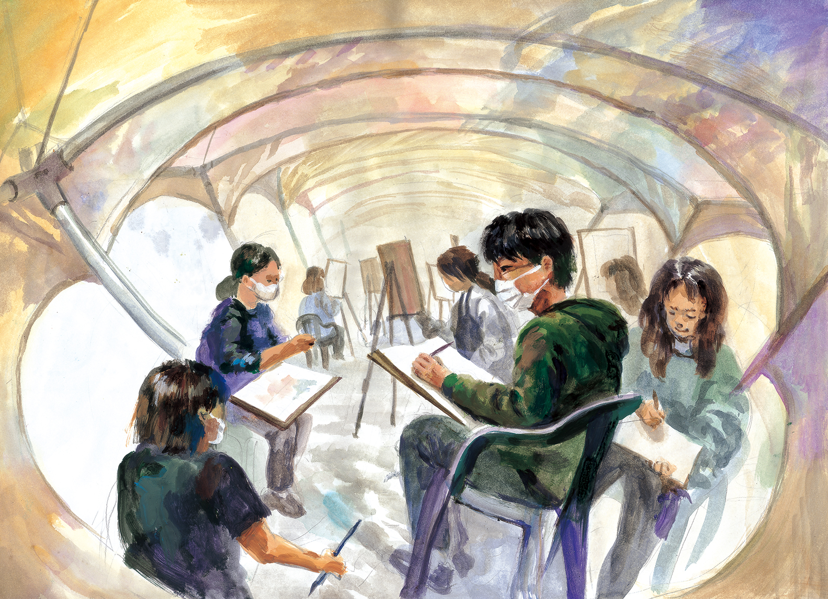 대회 안에서 우리 서로가 경쟁자라는 생각이 쉽게 들고는 한다. 하지만 우리 모두가 그림을 그린다는 점에서 함께라는 생각이 든다. 따로 그림을 보고 따로 생각을 하고 목표를 가지고 서로의 그림을 따로 보고 분리하지만 최종적으로 우리는 그림을 그리는 사람들이고 함께 그림을 그리고 있다는 거 지금까지도 그림을 그리고 있고 그림에 애정을 가지는 사람들의 얼굴을 마주하고 같이 몸을 움직이는 시간이 대회는 내게 화합이다