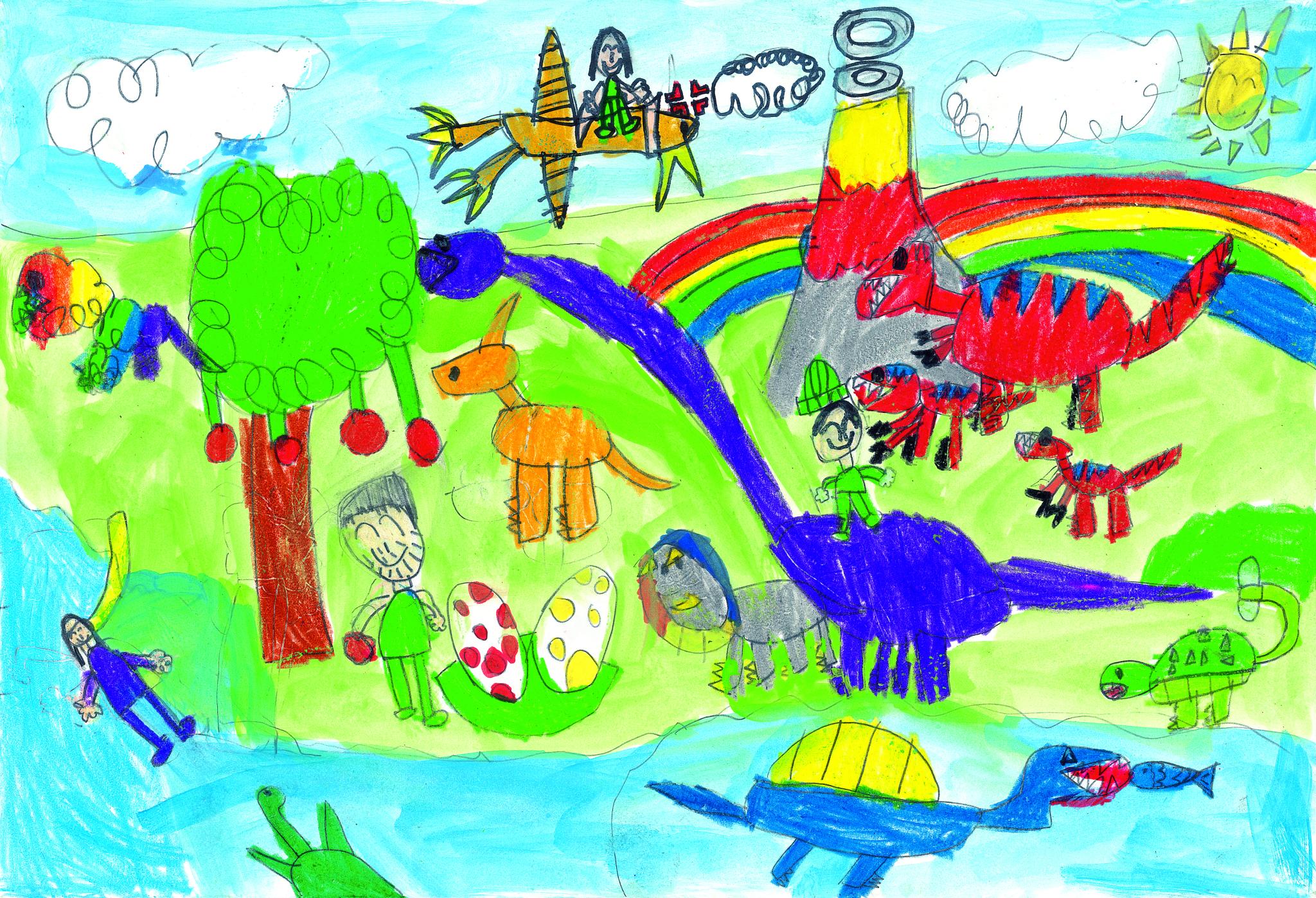 가족들 함께 공룡세계를 탐험해요. 동생은 프테라노돈을 타고 하늘을 날고 나는 브라키오사우루스를 타요. 아빠는 열매를 따고 엄마는 잠수를 해요. 신기한 공룡세계에서 가족 모두 흥미진진한 하루를 보내요.
