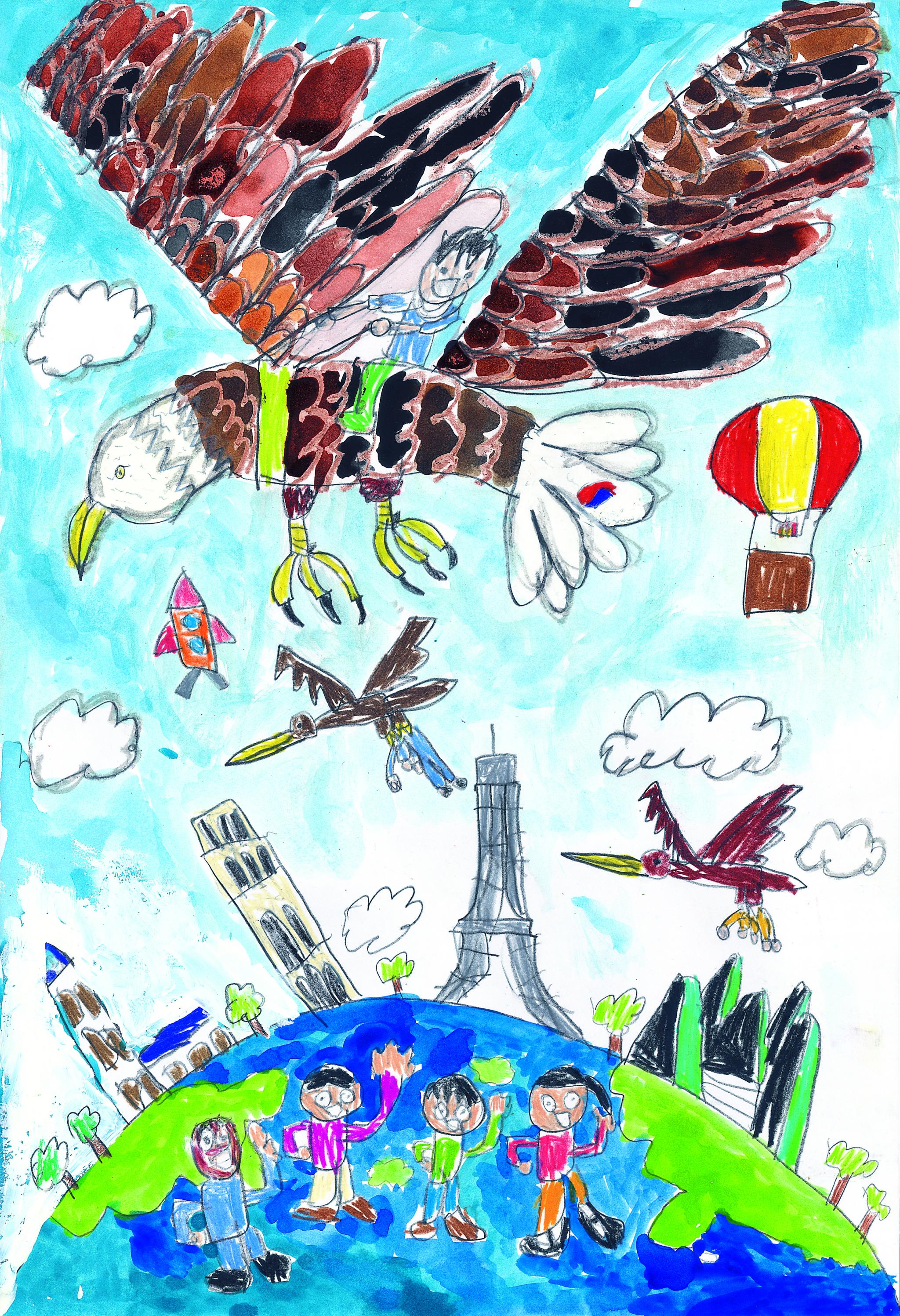 커다란 독수리를 타고 세계의 친구들을 만나요.