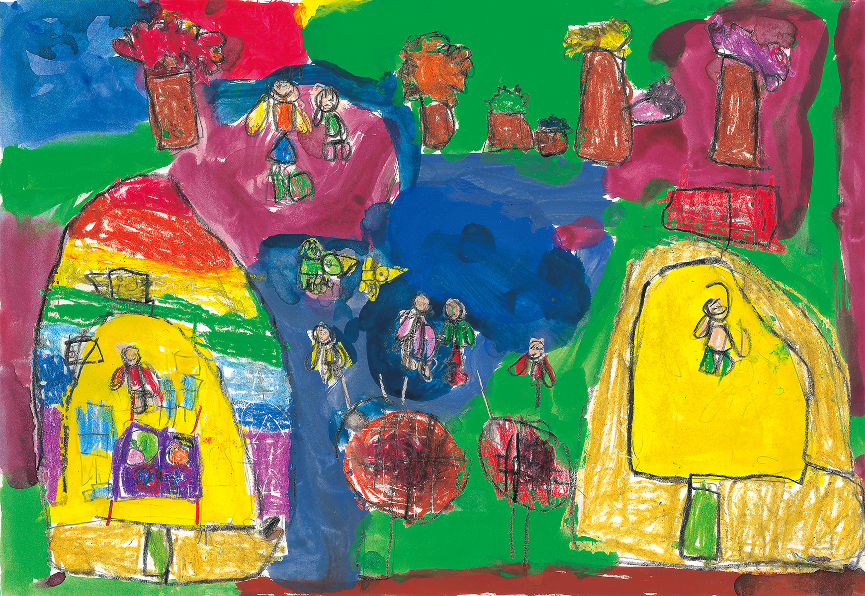 캠핌장에서 즐겁게 마시멜로먹고 술래잡기 하는 그림입니다.