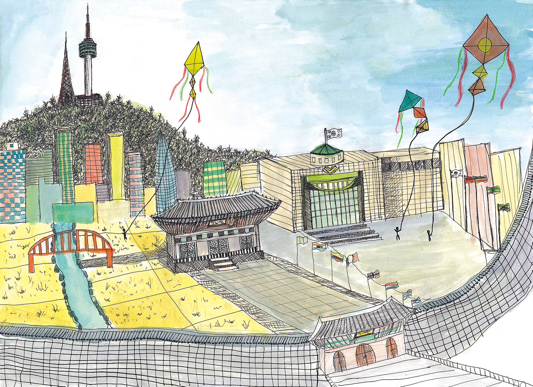 옛 모습과 현재 모습을 합쳐 아름다운 모습을 그림으로 담아냈다.